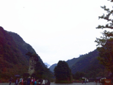 因为正值淡季,旅游团同行的人并不多。其中有五个来自广东的老人,平均年龄65岁,真替他们担心能不能坚持下来。十几个人坐在小型大巴车上,听着导游千篇一律的介绍,欣赏着窗外淅淅沥沥小雨中重庆的美景。都说重庆是座山城,这么一看,确实是了:依附在半山腰的高楼大厦,何尝不是一种特色呢!