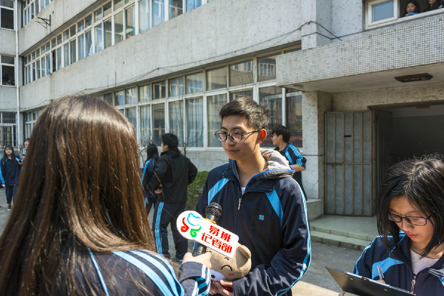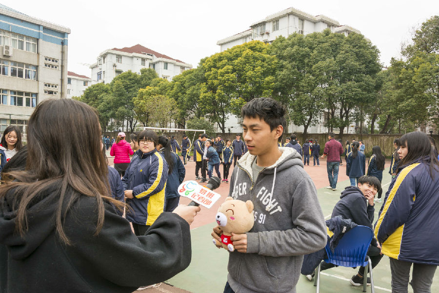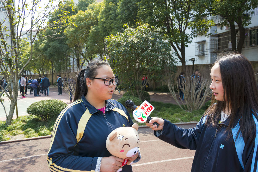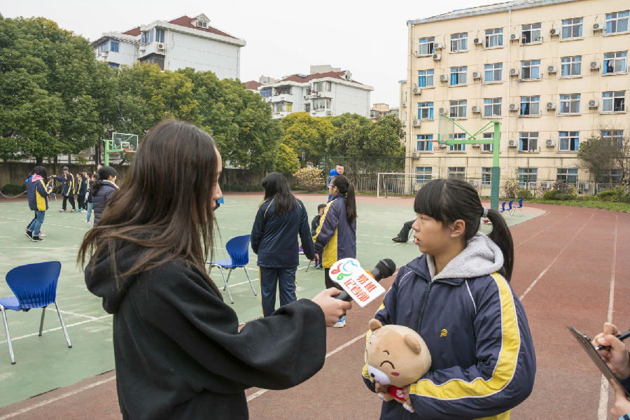 在比赛前,小记者进行了第一次校内随机采访。