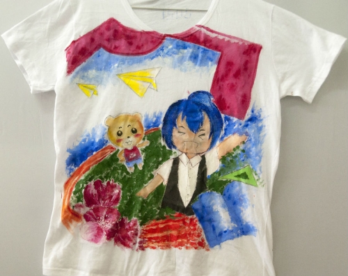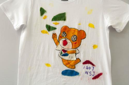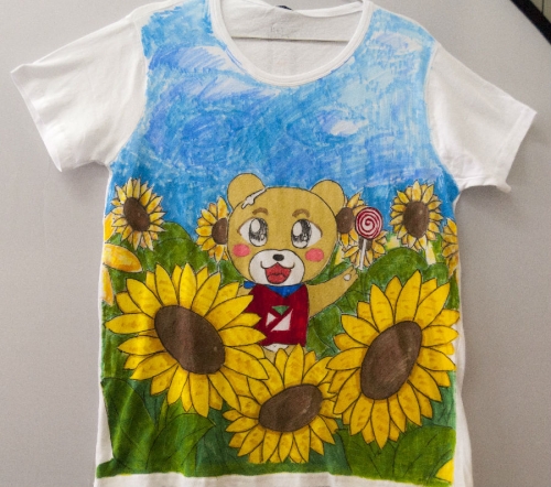 T恤上绘画对于大多数同学来说是第一次,比起在硬纸板上画画而言相对困难些,但这些困难丝毫没有影响同学们的创作热情。中间有不少作品是班级中几位同学合力完成的,这些T恤体现的不单单是同学们精湛的绘画功底,小编也从中看到了班级的团队合作精神。