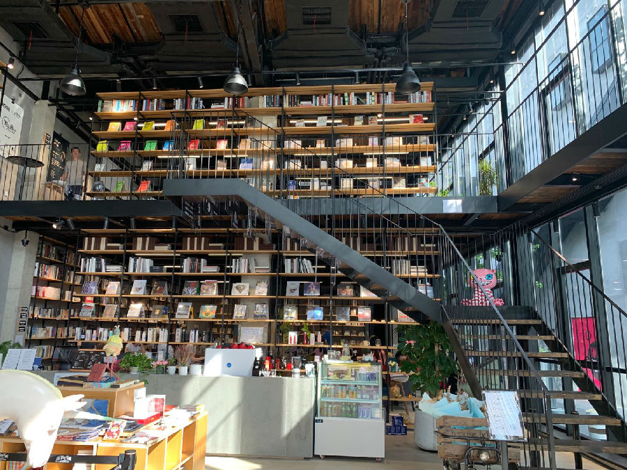 看看这极具现代气息的落地窗,再看看这若隐若现的书海,这里就是位于浦东新区金桥的『城市不眠书店。』