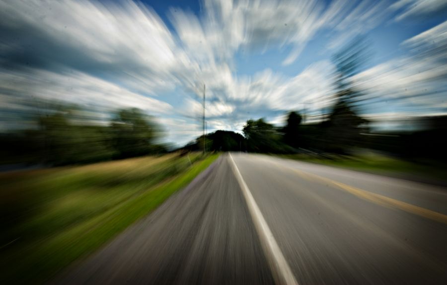 夜间拍摄时,由于环境光较低,可以恰当放慢拧动变焦环的速度,延长曝光时间,使轨迹线更明显。快速拧动变焦环,轨迹光不太明显。