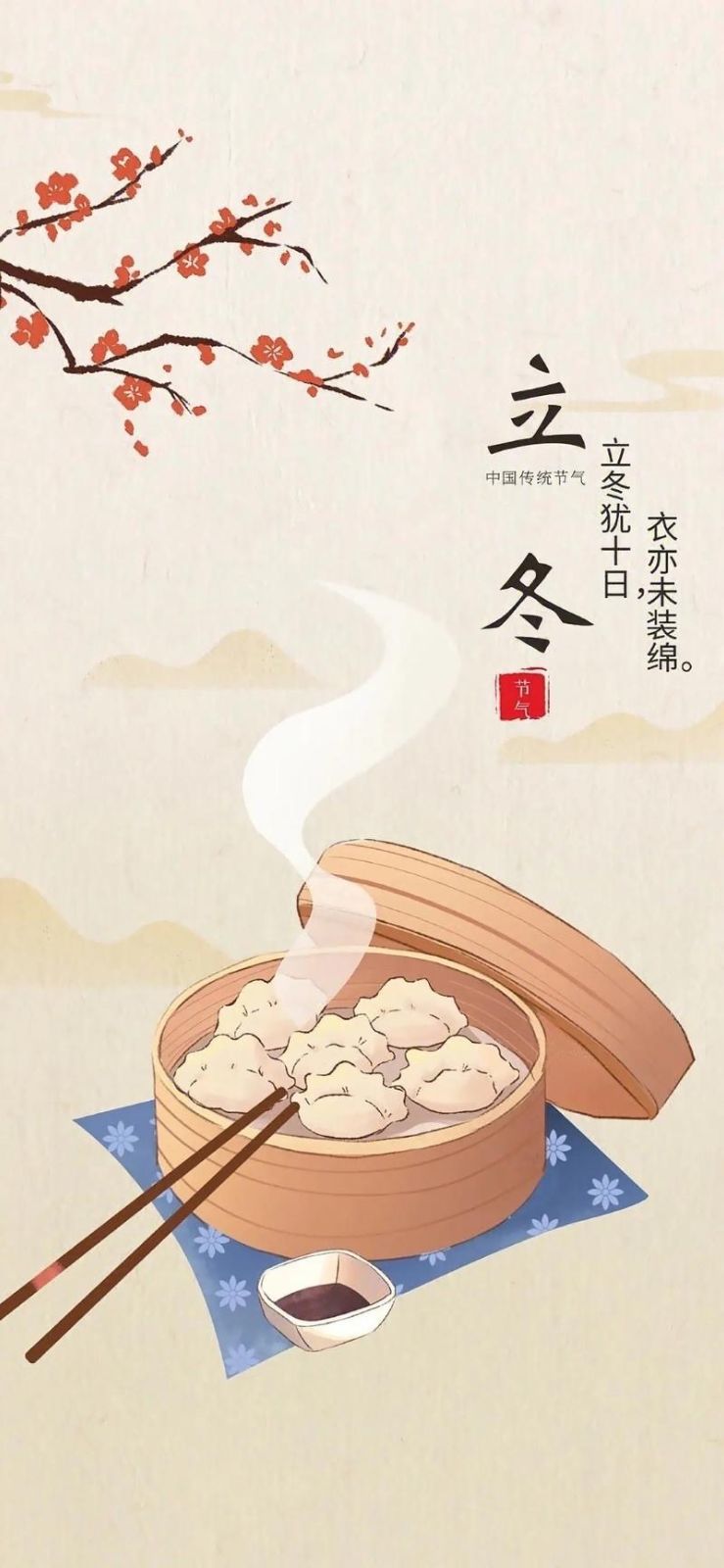 立冬,是二十四节气之第十九个节气,也是冬季的起始。斗柄指向西北,太阳黄经达225°,于每年公历117-8日之间交节。立,建始也;冬,终也,万物收藏也。立冬,意味着生气开始闭蓄,万物进入休养、收藏状态。其气候也由秋季少雨干燥向阴雨寒冻的冬季气候过渡。