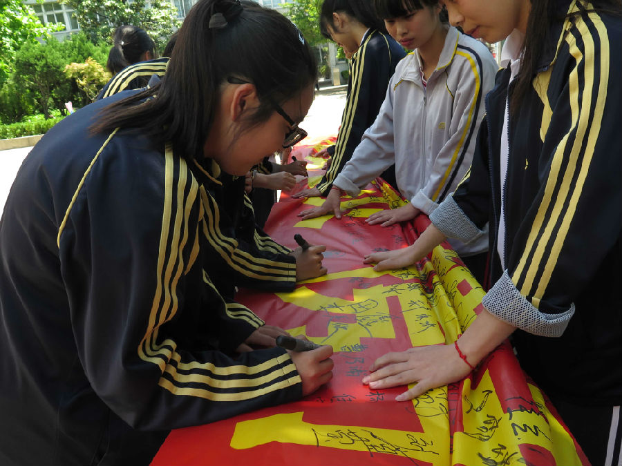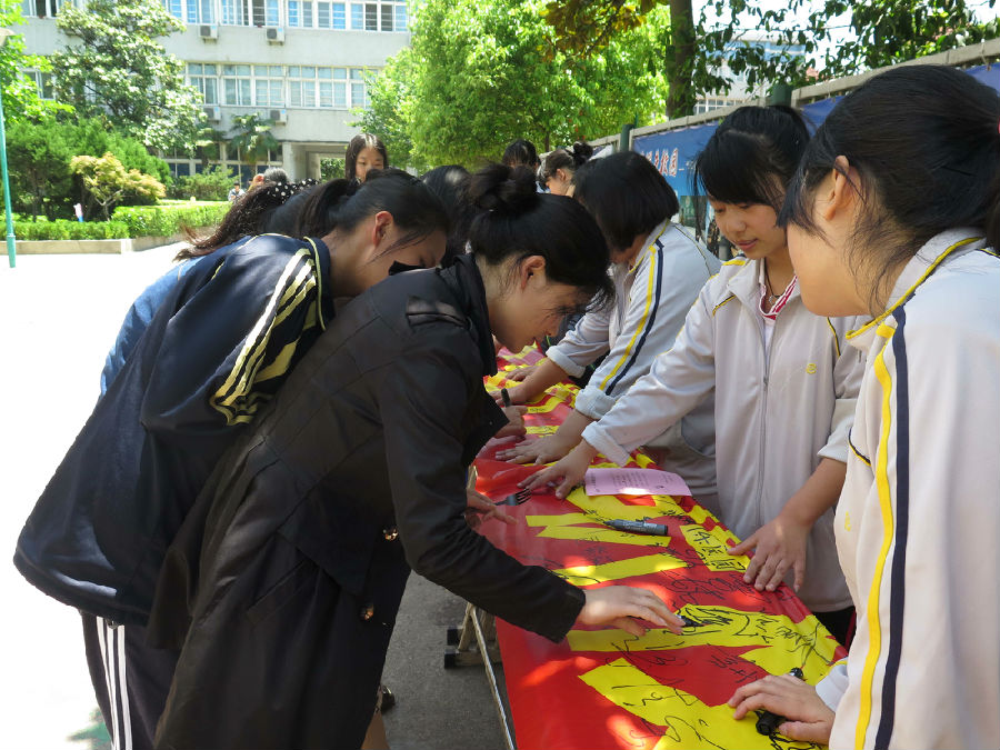 2)由老师带领大家在宣传横幅上进行签名。