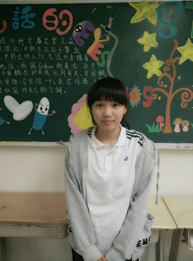 蒋琦是1402班平面媒体印刷技术,进入职业技术学校已经有一年多的时间,通过这一年多的努力与锻炼,她感受很多,不论是在生活中还是在锻炼中,都得到了老师和同学们的肯定。