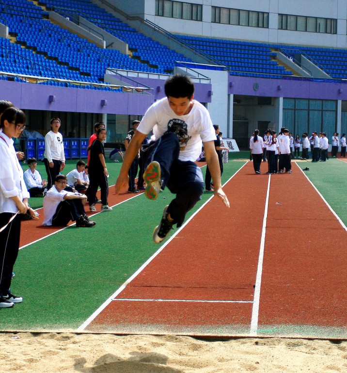 第二个个人单项——跳远。田径运动跳跃项目。又名急行跳远。由助跑、起跳、腾空和落地等动作组合而成。运动员沿直线助跑,在起跳板前沿线后用单足起跳,经腾空阶段,然后用双足在沙坑落地。比赛时以跳的远度决定名次 。跳远需要极强大的爆发力,检录处的同学一刻也不敢让自己闲着,他们需要不断的热身让自己维持状态。比赛开始后,每位同学都尽自己的全力一跃冲天,平均都跳了4米的远度,成绩本不是最重要得,但同学们跳完之后满足的表情说明了他们明白过程的珍贵。1509班的刘嘉骏同学,平日里热爱跳远,他那离弦箭似的助跑,蚂蚱似的起跳,空中的走步表演,引起阵阵惊叹,落地的瞬间,他触到了沙的柔软,不管怎样,荣誉永远属于他。